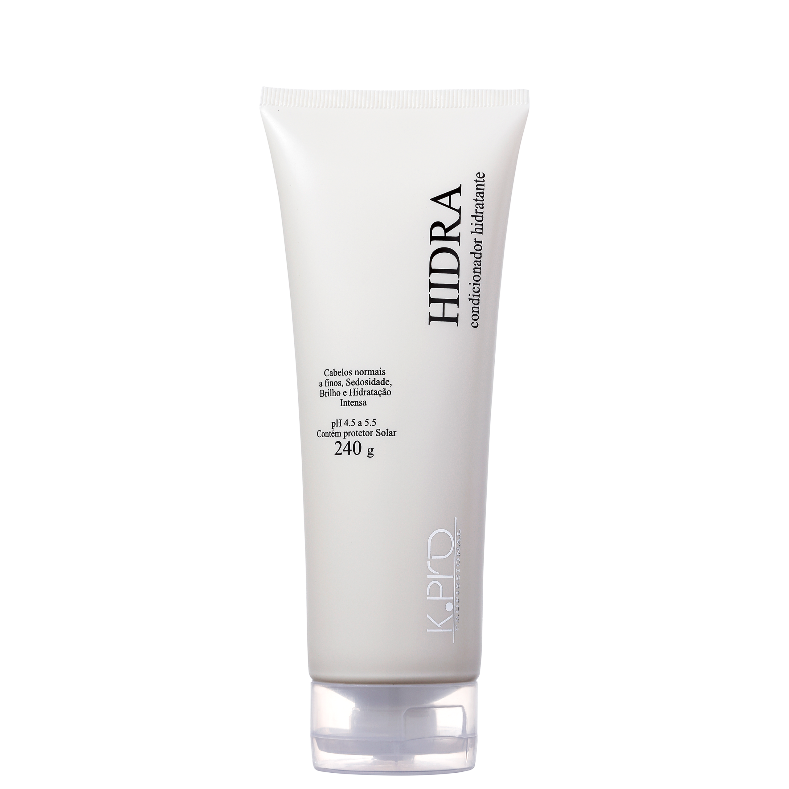 Detalhes K.Pro Hidra Condicionador hidratante para cabelos normais a finos, tratados quimicamente ou não. K.Pro Hidra Condicionador Hidratante hidrata e nutre profundamente os fios, repondo a camada ácida natural de cabelos ressecados ou danificados. K.Pro Hidra Condicionador Hidratante contém filtros UV. Cabelos macios, hidratados, nutridos e com muito brilho!