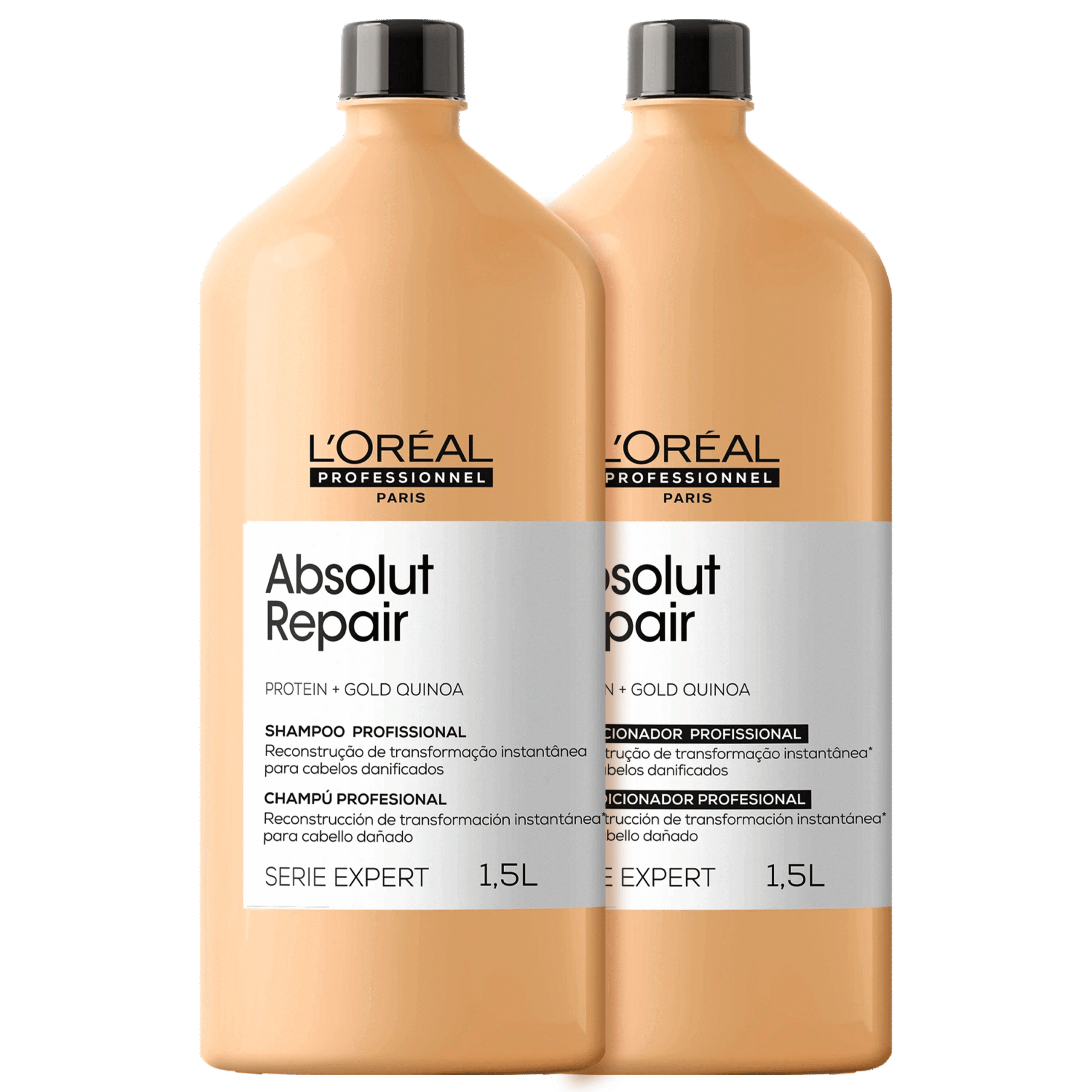 Detalhes Kit L’Oréal Professionnel Serie Expert Absolut Repair Gold Quinoa + Protein Salon Duo (2 Produtos) Kit para cabelos danificados em tamanho salão. O Kit L’Oréal Professionnel Serie Expert Absolut Repair Gold Quinoa + Protein Salon Duo faz uma restauração dos fios para que fiquem brilhantes, macios e suaves. O Kit L’Oréal Professionnel Serie Expert Absolut Repair Gold Quinoa + Protein Salon Duo traz ativos que ajudam restaurar a superfície dos fios para que o cabelo revele uma aparência mais saudável. Seu visual ganha muito mais brilho e um toque macio incrível.