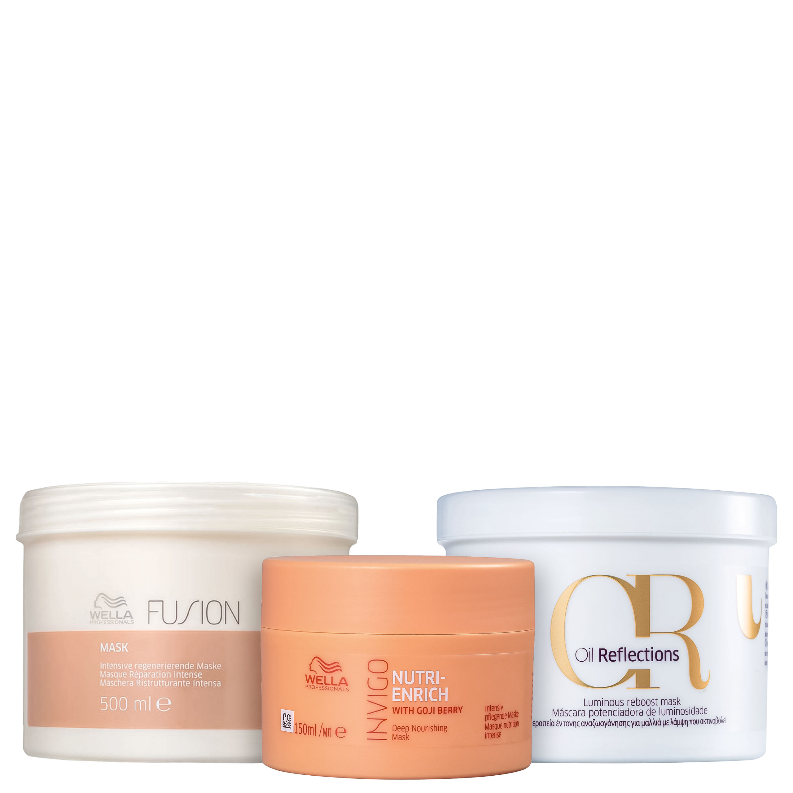 Detalhes Kit Wella Professionals Cronograma Capilar Salon (3 Produtos) Kit de máscaras para cronograma capilar. Wella Professionals Cronograma Capilar Salon é ideal para os fios fragilizados e quebradiços. O Kit Wella Professionals Cronograma Capilar Salon oferece um tratamento completo para uma reparação profunda e duradoura. Sua fórmula poderosa age diretamente nas áreas fragilizadas, nutrindo, hidratando e reconstruindo a fibra capilar desde o interior. Com o uso contínuo, você sentirá a diferença: cabelos mais fortes, resistentes à quebra, com brilho intenso e toque macio como a seda. Experimente e surpreenda-se com a saúde e beleza dos seus fios renovados.