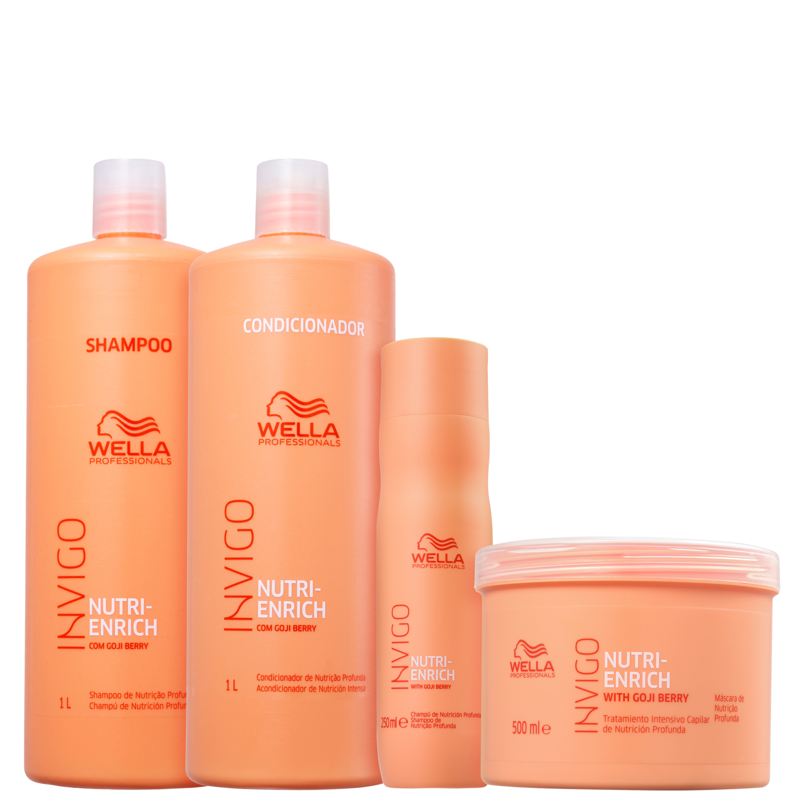 Detalhes Kit Wella Professionals Invigo Nutri-Enrich Salon Power (4 Produtos) Kit para cabelos ressecados e com química. Wella Professionals Invigo Nutri-Enrich Salon Power proporciona hidratação profunda, nutrição intensa e controle do frizz. O Kit Wella Professionals Invigo Nutri-Enrich Salon Power transforma a fibra capilar de dentro para fora, recuperando a saúde, a beleza e a vitalidade dos fios danificados por química ou ressecamento. Para completar a experiência, envolva-se na deliciosa fragrância Frutal Chipre Almiscarada que acompanha o tratamento. Diga adeus ao aspecto ressecado e opaco, e dê boas-vindas a cabelos incrivelmente saudáveis e brilhantes!