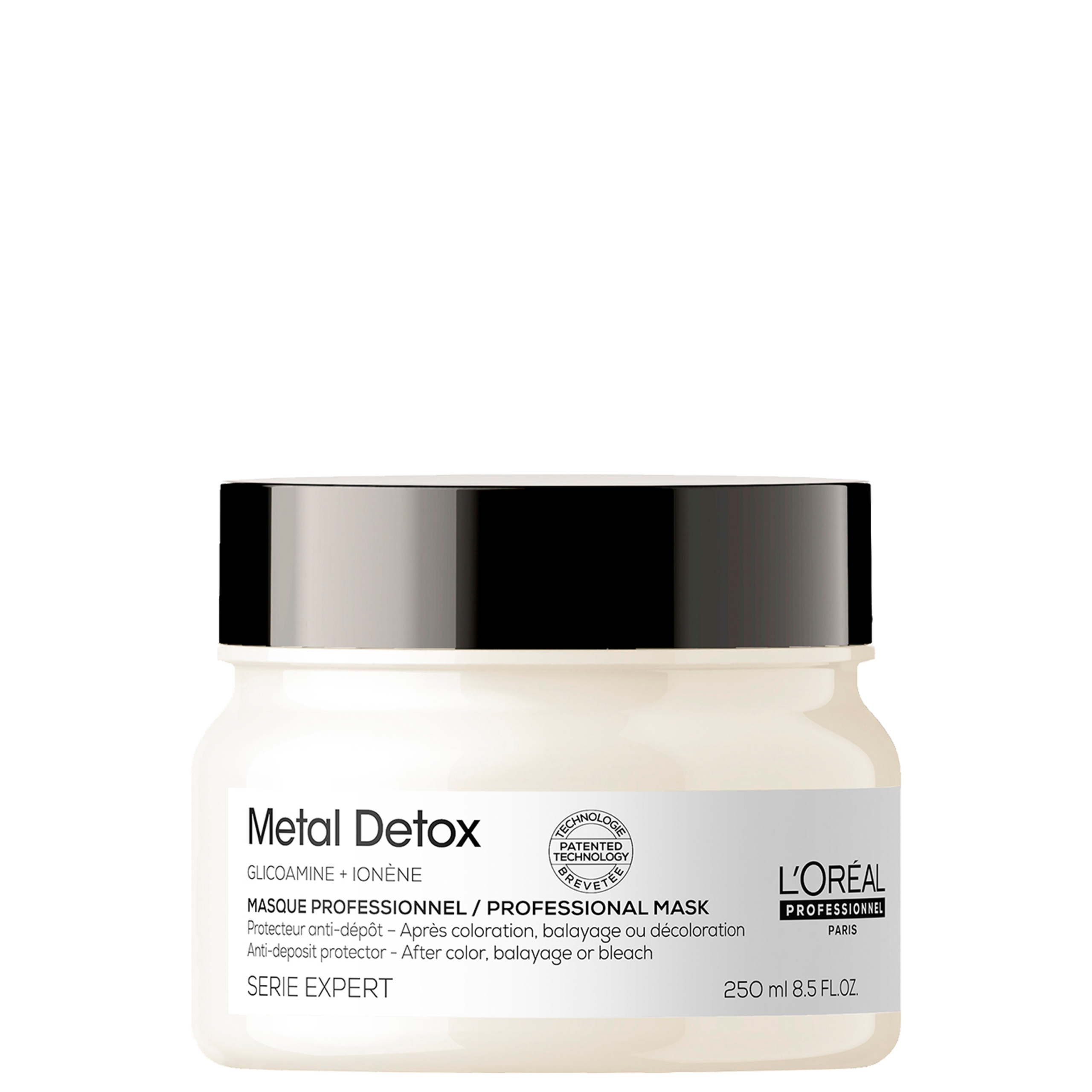 Detalhes L’Oréal Professionnel Metal Detox Máscara capilar para cabelos coloridos e danificados. L’Oréal Metal Detox é a primeira máscara protetora anti-depósito a proteger o cabelo do depósito de partículas de metal*. A Máscara Metal Detox, de L’Oréal Professionnel, possui tecnologia patenteada, enriquecida com Glicoamina, a molécula que rastreia e neutraliza o metal dentro da fibra capilar. Com fórmula profundamente nutritiva, proporciona um cabelo menos poroso e um tratamento para maciez, brilho e sedosidade, maior durabilidade da cor, com textura rica e cremosa. Experimente já a linha Metal Detox L’Oréal e desfrute dos benefícios! *Lavagem após lavagem, partículas de metal, presentes na água, como o cobre, podem penetrar nas fibras do seu cabelo. Pode atacar a integridade da fibra e promover mudança na cor dos fios. Em alta concentração, pode criar risco de quebra e reflexos indesejados podem aparecer. Para prevenir danos e qualidade da cor, as partículas de metal podem ser neutralizadas. Descubra aqui mais detalhes sobre esse tema, com a expertise do blog Loucas por Beleza!