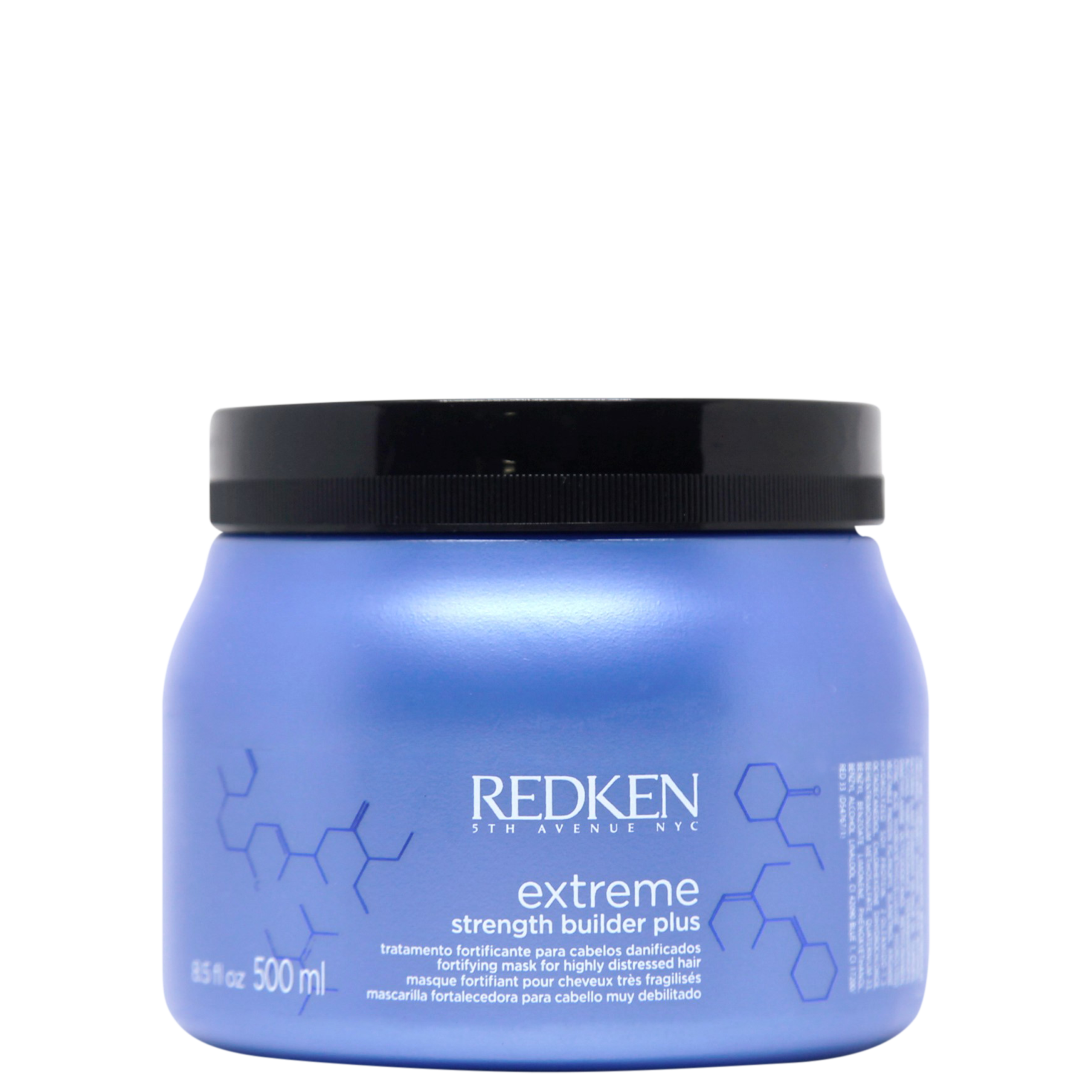 Detalhes Redken Extreme Strength Builder Plus Máscara de tratamento intensivo para cabelos extremamente danificados. Redken Extreme Strength Builder Plus proporciona força, condicionamento e reparação intensa aos fios. Redken Extreme Strength Builder Plus aumenta a resistência do cabelo que sofreu danos severos, para que fiquem até 96% mais fortes já após três aplicações.