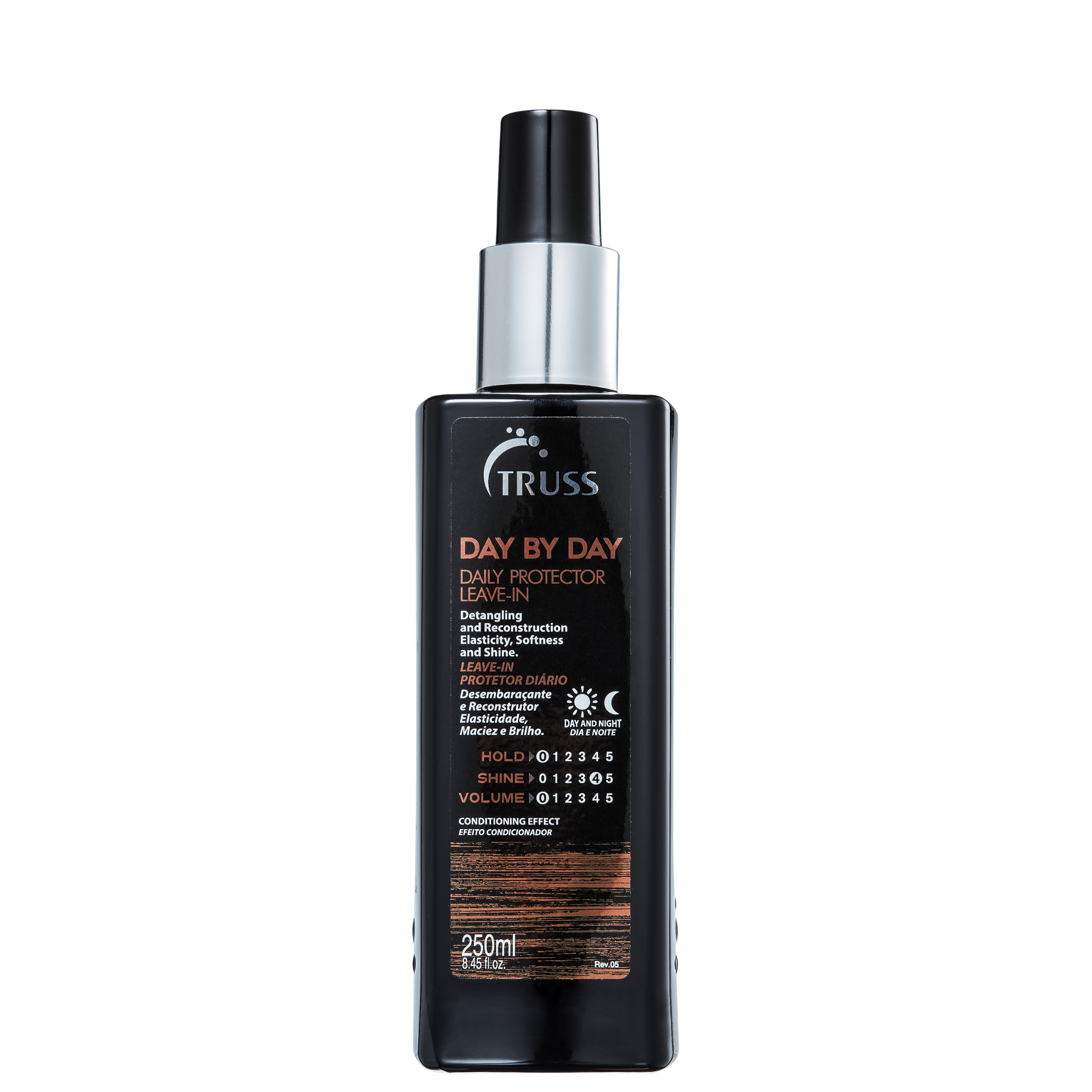 Detalhes TRUSS Day By Day Leave-in para cabelos danificados e ressecados. Truss Day By Day protege os fios, facilita a escovação e reestrutura a fibra capilar. O Leave-in Truss Day